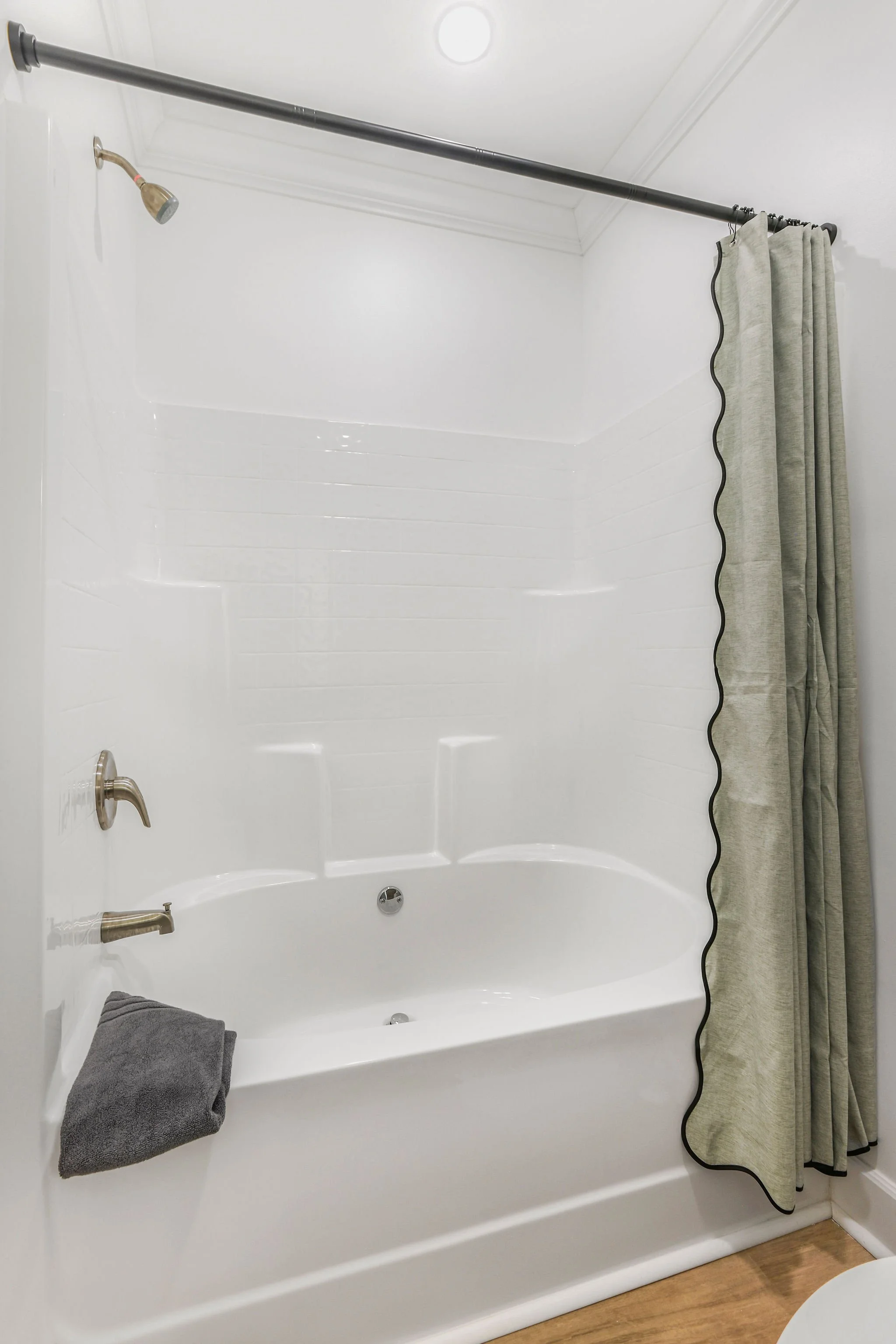 One bathroom with tub next to bunk room