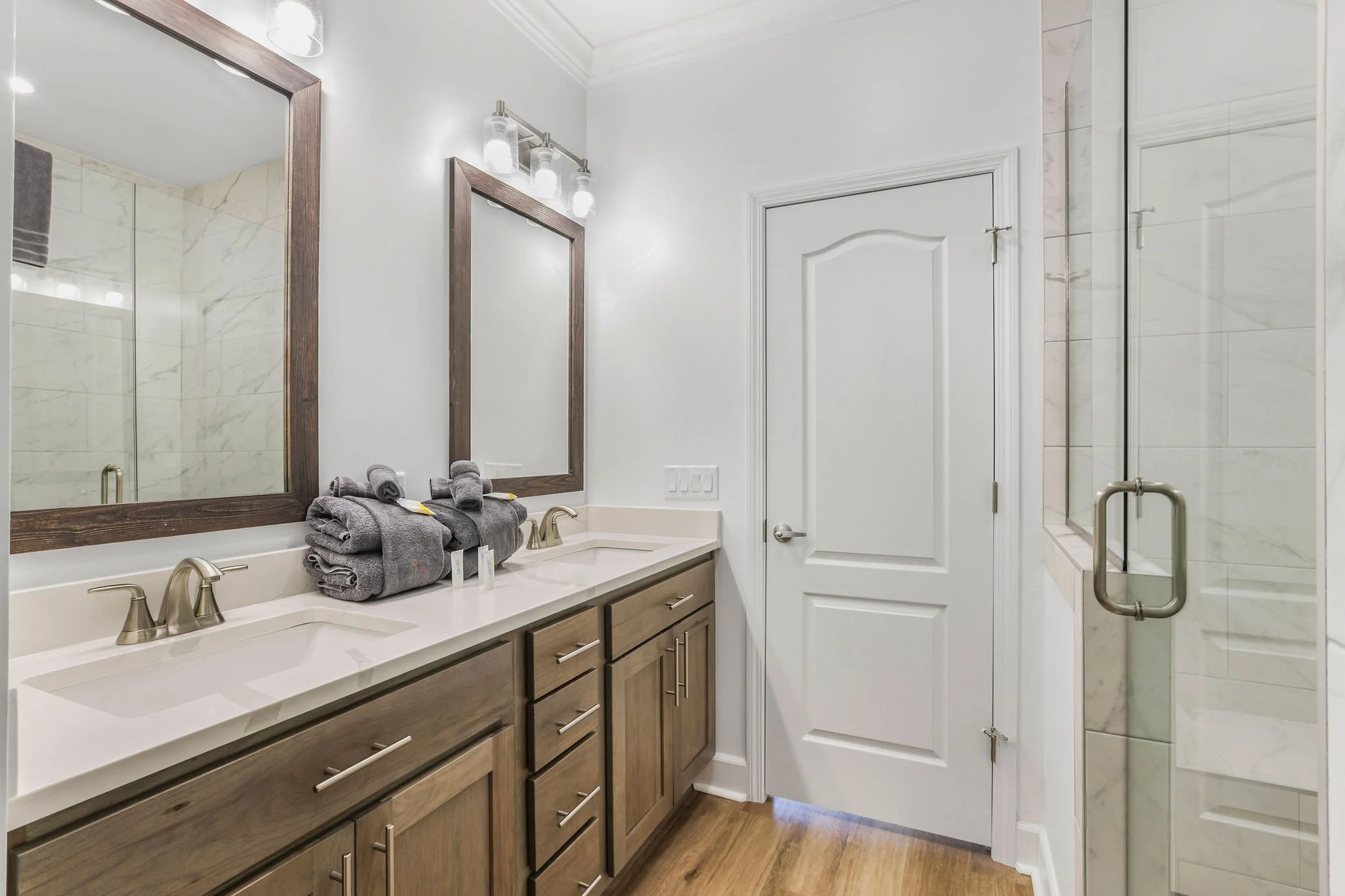 All bathrooms are stocked with soft towels, bath products, and plenty of storage.