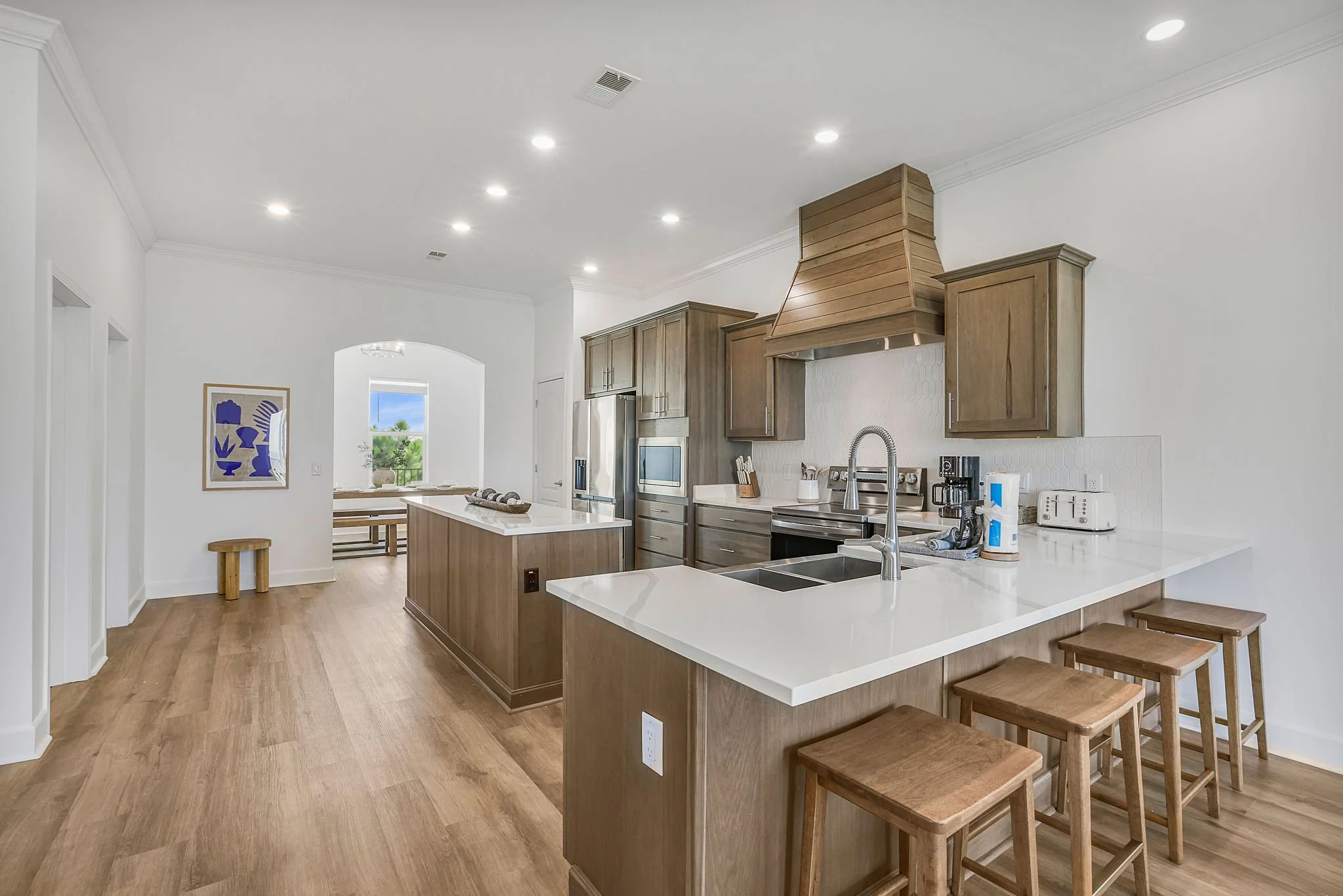 Dining space for the whole family, including a formal dining room, a sunny breakfast table, and four counter stools